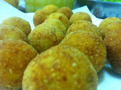 Mas dessa vez ela criou uma bolinha de milho, que é de comer de joelhos! Sim, é frita, mas fica tão, tão gostosa, que é irresistível! E uma friturinha de vez em quando não faz tão mal assim.....